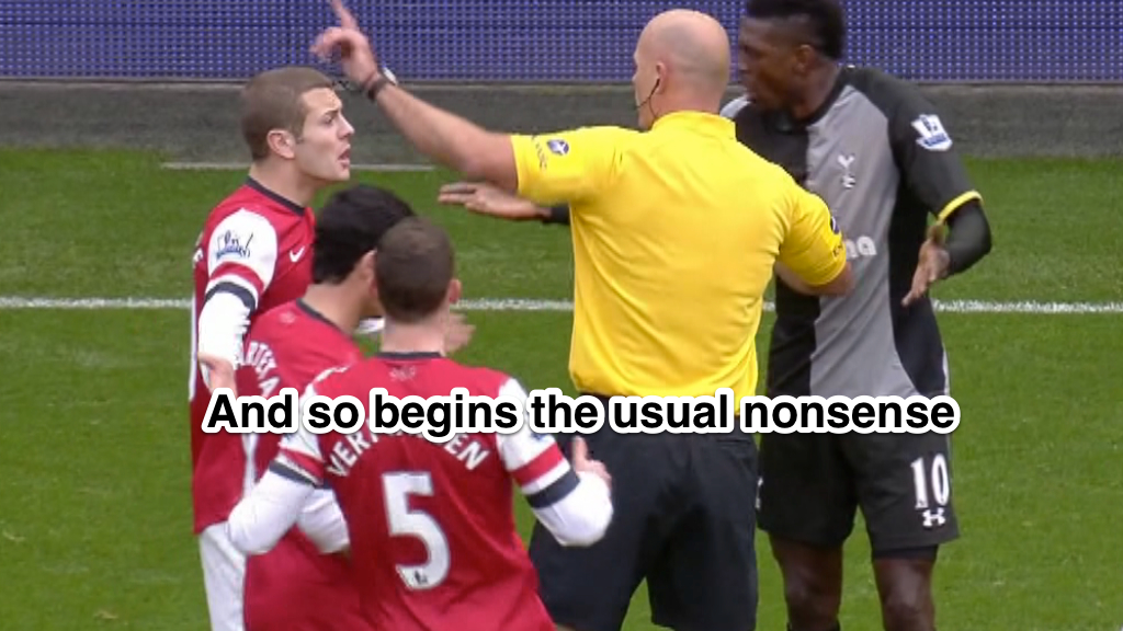 In a recent Barclay’s Premier League derby match between Arsenal and Tottenham Hotspur, Referee Howard Webb sent off Spurs striker Emmanuel Adebayor in the 17th minute for serious foul play. There can be little argument this was the correct decision. But the delay was lengthy and some interesting interactions took place that are worthy of analysis.