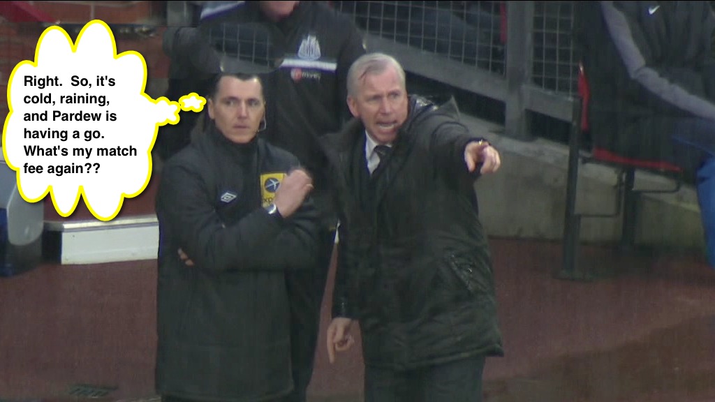 It just so happens that I have some relevant frames showing the fourth officials hard at work. I’ve taken the opportunity to have a little fun at the manager’s expense. Hopefully, the supporters of said manager’s sides take it as it is intended: a harmless bit of fun.