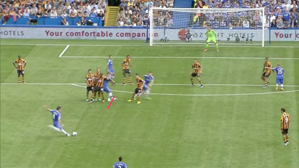 As defenders from Hull City AFC (or is it Hull City Tigers now?) formed up a wall, Ivanovic inserted himself into the middle of it. As Lampard began his run-up to take the kick, Ivanovic created space in the wall with a box out that Phil Jackson would be proud of. Ivanovic moved the Hull defender at least a yard to the left, leaving Lampard with a clear path to goal. The fact that Lampard’s free kick was brilliantly taken shouldn’t overshadow the fact that Ivanovic cheated by opening the hole in the wall.