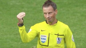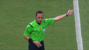 Referee Ravshan Irmatov of Uzbekistan relies on his fitness and mental sharpness to allow play to continue, leading to the game’s winning goal.